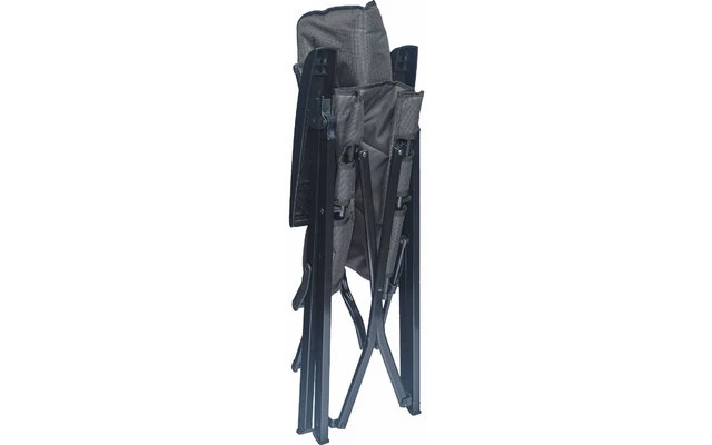 Die schwarzen Armlehnen und das Gestell verleihen dem kompakten Campingsessel ein elegantes und zeitloses Aussehen. Der Modi wird von beiden Seiten her in sich zusammengeklappt und braucht deshalb in zusammengeklapptem Zustand sehr wenig Platz.